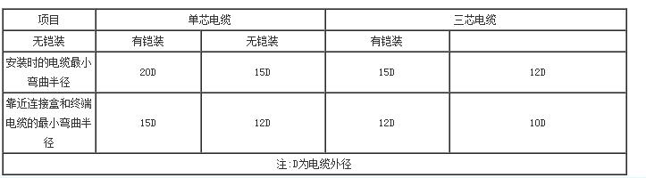 安裝時(shí)電纜最小彎曲半徑見(jiàn)表4—5。